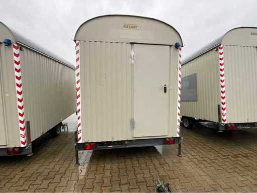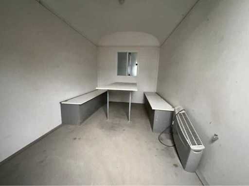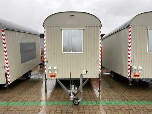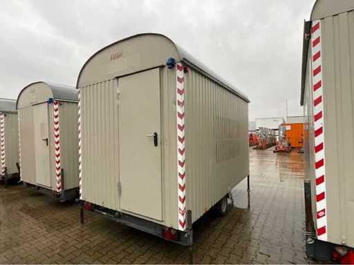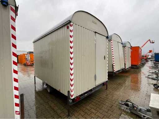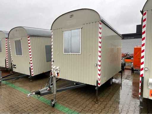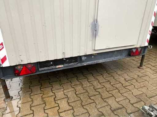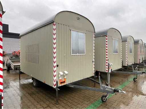 staalplaat corpus; geremd; neuswiel; 4x stelvoet; kogelkoppeling en transportverlichting; 1x deur; raam voorzien van gegalvaniseerd staal luik; tafel; 2x zitbank; kachel; (de koper dient bij transport over de weg zelf te voorzien in een geldig kenteken; een 7 of 9 polige aansluitstekker of verloopstuk met kabel (verlengsnoer kan ter plaatse tegen betaling aangekocht worden); eventueel extra lichtbalk; Duitse kentekenpapieren; gelijkvormigheidsattest; (M-U2747)