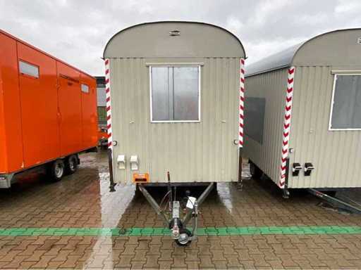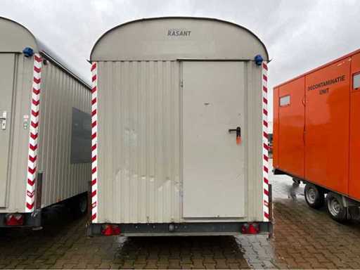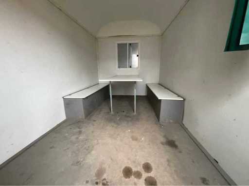 staalplaat corpus; geremd; neuswiel; 4x stelvoet; kogelkoppeling en transportverlichting; 1x deur; raam voorzien van gegalvaniseerd staal luik; tafel; 2x zitbank; (de koper dient bij transport over de weg zelf te voorzien in een geldig kenteken; een 7 of 9 polige aansluitstekker of verloopstuk met kabel (verlengsnoer kan ter plaatse tegen betaling aangekocht worden); eventueel extra lichtbalk; Duitse kentekenpapieren; gelijkvormigheidsattest; (M-U5463)