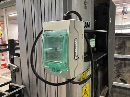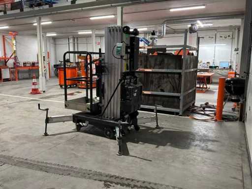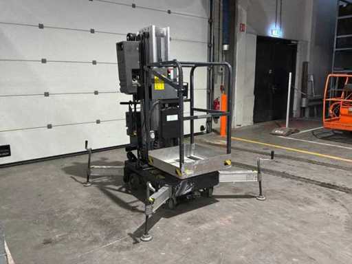 compacte personenlift; voorzien van 4 regelbare steunvoeten; toepassing: onderhoud / service / montagewerkzaamheden; uitvoering: staal / aluminium; verrijdbaar; 230 Volt; netstroom; 12 Volt accu; working condition;