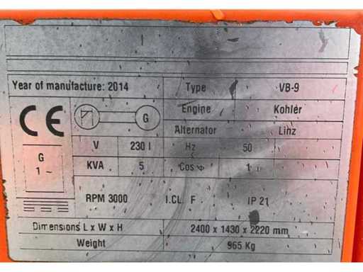 Kohler diesel motor; Linz alternator; 6x 230W LED lamp; 230 Volt aansluiting; 5 kVA; ingebouwde brandstoftank; hydraulische mast; maximale masthoogte circa 8 meter; afgelezen urenstand 1071 uur; lichtsensor; heftruck vorksleuven; 4x stelvoet; hijsoog; not working; (de koper dient bij transport over de weg zelf te voorzien in een geldig kenteken; een 13 polige aansluitstekker of verloopstuk met kabel (verlengsnoer kan ter plaatse tegen betaling aangekocht worden); eventueel extra lichtbalk); Belgische kentekenpapieren; gelijkvormigheidsattest; (1-QES-561)