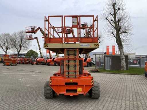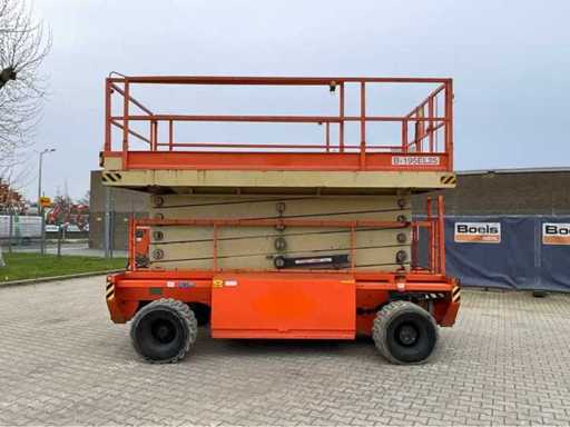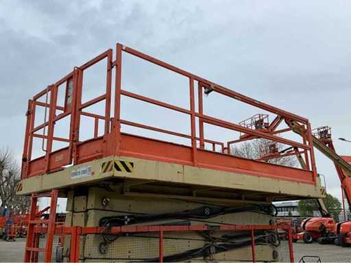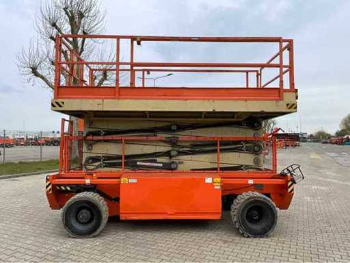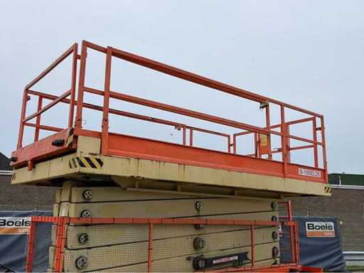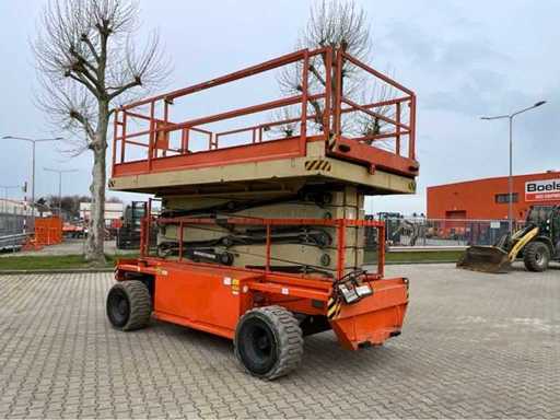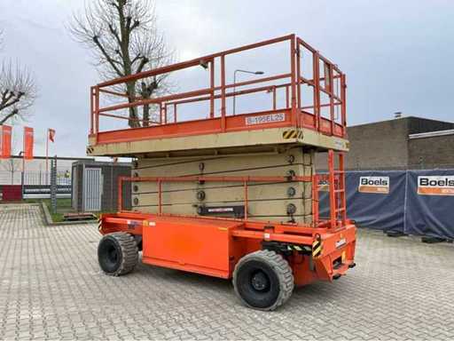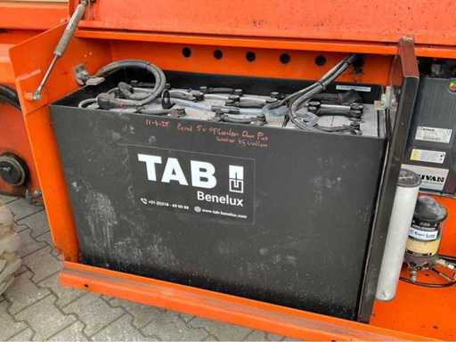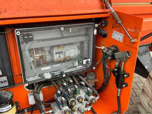 gebruik: buiten; uitschuifbaar platform afmeting circa 6800x2300 mm; platform vloerhoogte 19500 mm; kooibediening; 230 Volt stroom aansluiting platform; transporthoogte circa 2850 mm; working condition;
