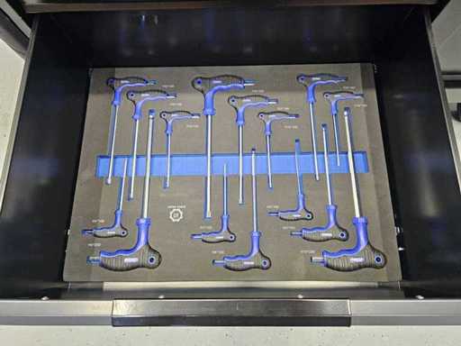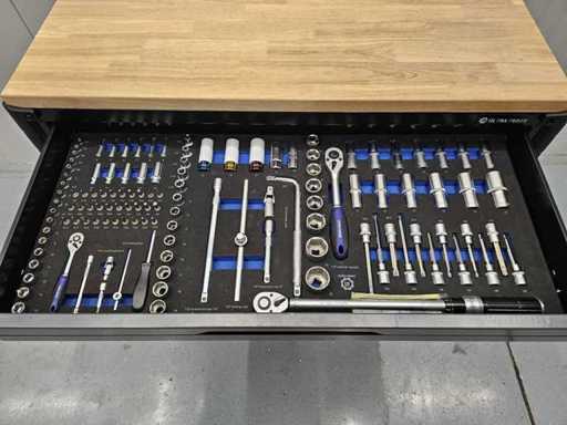 Professionele gereedschapswagen, 13 laden waarvan 11 gevuld met 298 pcs gereedschap.
