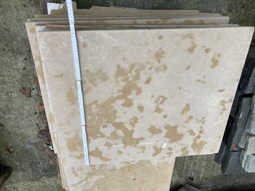 1 palet Bourgondische witsteen banen vrije lengte, 60 breed, 2cm dik