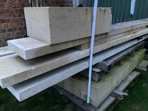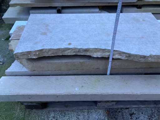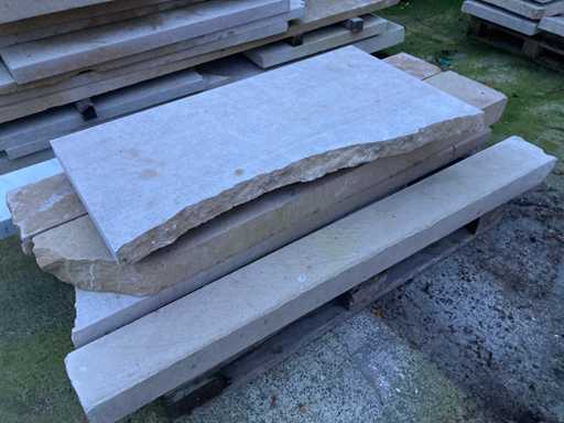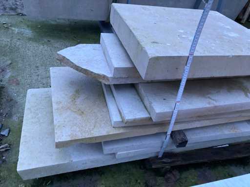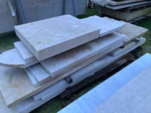 4 paletten Bourgondische witsteen en 1 metalen bok met witsteen platen.