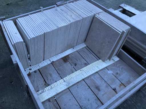 3 paletten bourgondische witsteen: Banen vrije lengte breedte 50cm tegels 40/40/1,5cm 13m²