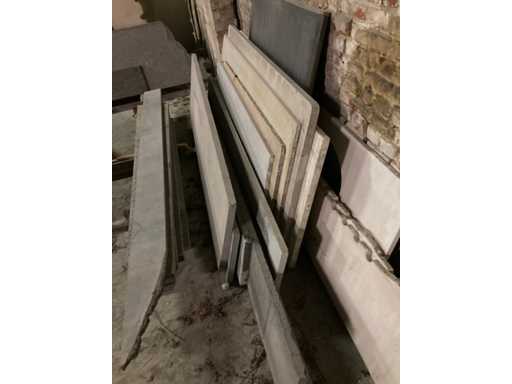 Restplaten marmers en Belgische blauwe steen. Partij volledig mee te nemen