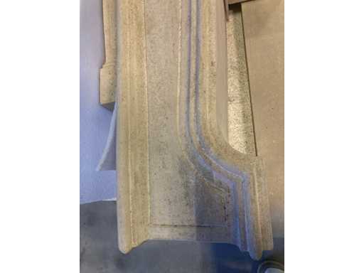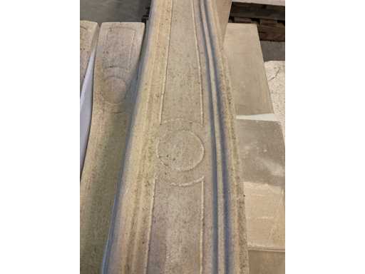 Schouw in witsteen Savonnières met geprofileerde montants en deksteen. Binnenmaat 120 x 85cm buitenmaat 147 x 104,5 x 30cm