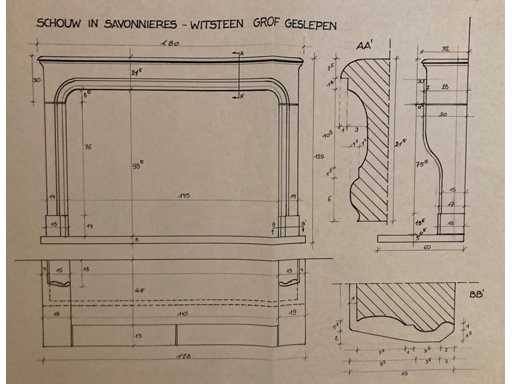 Schouw in witsteen Savonnières met geprofileerde montants en deksteen.