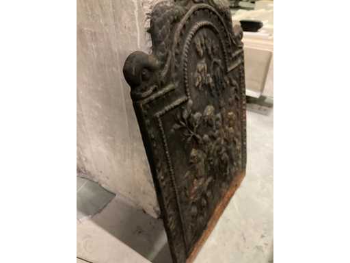 Antiek gietijzeren plaat voor haard