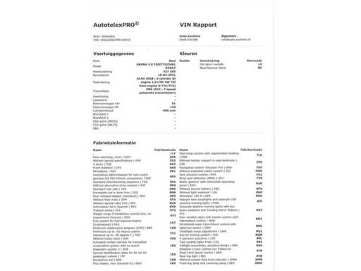 Tussen de afbeeldingen vindt u het VIN Rapport met Fabrieksinformatie en Opties en Accessoires.