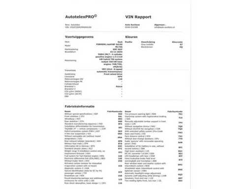 Tussen de afbeeldingen vindt u het VIN Rapport met Fabrieksinformatie en Opties en Accessoires.
