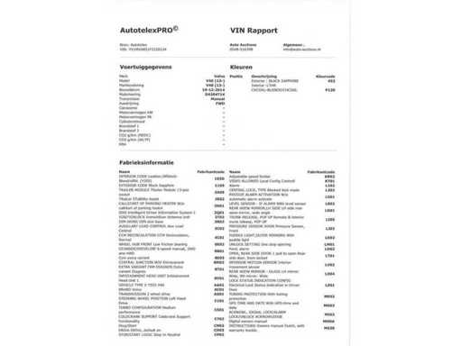 Tussen de afbeeldingen vindt u het VIN Rapport met Fabrieksinformatie en Opties en Accessoires.