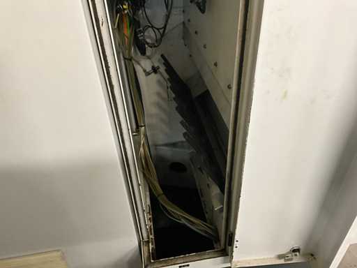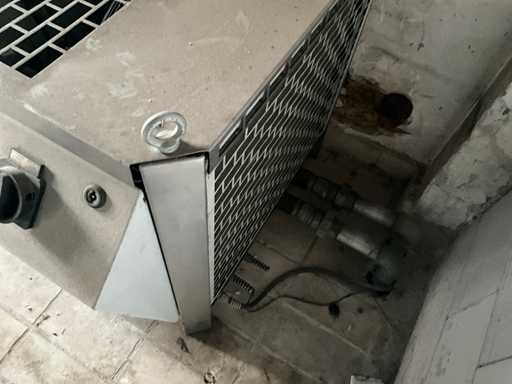 Koelunit bevindt zich op de verdiepingsvloer, enkel bereikbaar via trap. Buizen door plafond dienen verwijderd te worden, afwerking gaten niet noodzakelijk