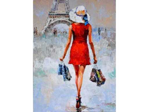 Antonio Palmieri – Shopping girl in Paris - olie op doek - 120x90 cm