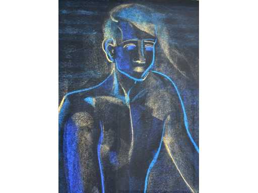 Onleesbaar signatuur - Mannelijk naakt - pastel