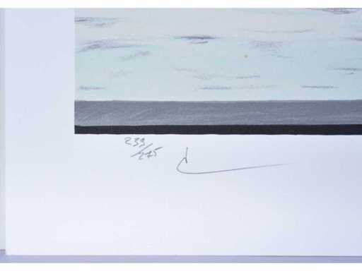 lithografie naar het werk van René Magritte 'Un peu de l'âme des bandits’ uit 1960 - Voorzien van de droogsptempel van ADAGP en van de Succession Magritte alsook de paraf van Charly Herscovice