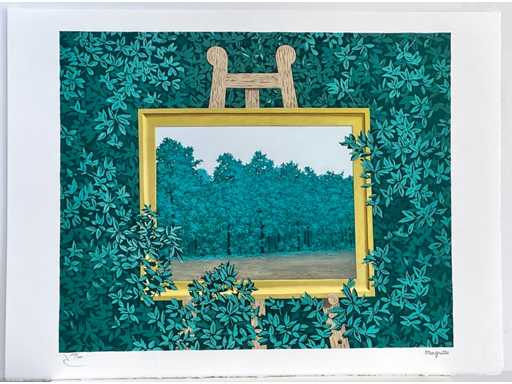 lithografie naar het werk van René Magritte 'La Cascade' uit 1961 - Voorzien van de droogsptempel van ADAGP en van de Succession Magritte alsook de paraf van Charly Herscovice - Betreft het grootste uitgegeven formaat van de reeks naar Magritte