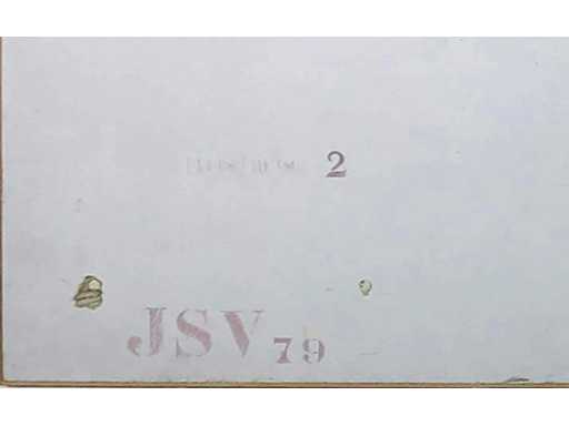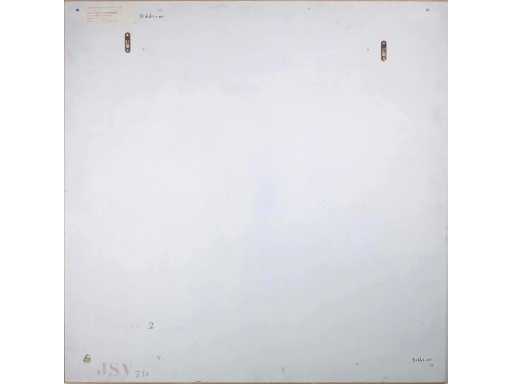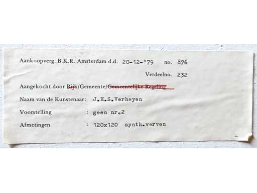Geometrisch schilderij van Joan S. Verheyen. Op achterzijde voorzien van initialen in sjabloondruk.
