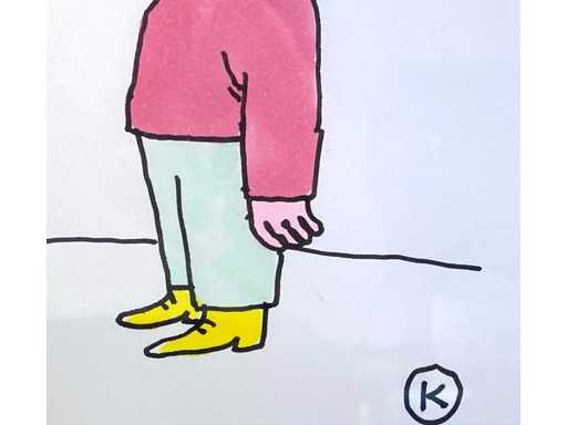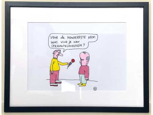 Originele cartoon van Kamagurka, ingelijst met psse-partout