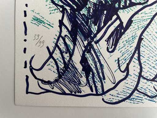 Getekend en gemaakt door de door Alechinsky op een manuscript van Marcel Moreau.