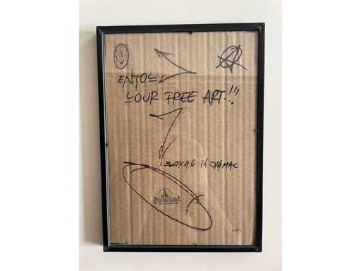 Ingekaderd karton dat waarschijnlijk uit het park komt van Dismaland (in 2015)