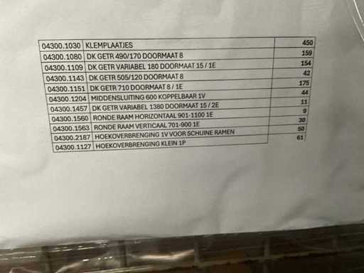 Waaronder klemplaatjes, doormaten, middensluitingen, hoekoverbrengingen. In diverse soorten en uitvoeringen en enig toebehoren. Detaillijst van inhoud op laatste foto !