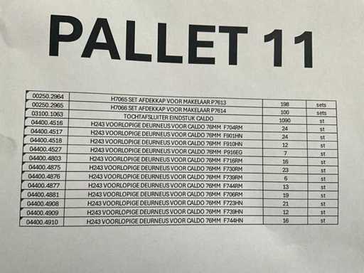 Waaronder H243 voorlopige deurneuzen, sets afdekkappen, tochtafsluiter eindstuk en toebehoren.
