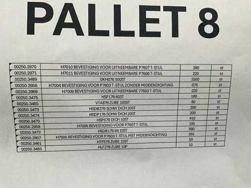 Waaronder bevestigingen voor uitneembare T-stijlen, dichtingen, diverse bevestigingen en toebehoren.
