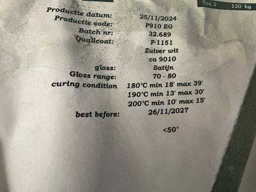 Vat zeoliet moleculaire zeven, elk van 130 kg, waaronder in qualicoat P-1151 antracietgrijs CA7016 satijn glans en mat.