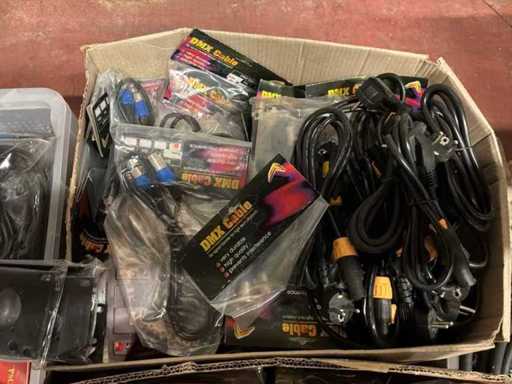 lot diverse bekabeling. Nieuw in verpakking: speakon, truecon start,audio xlr,dmx xlr, adapter kabels, patchpanelen. Gebruikt: Harting 16P splitters,16P Harting break-in spinnen