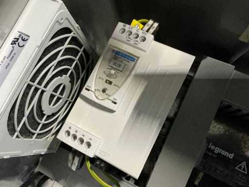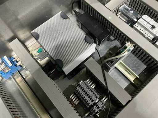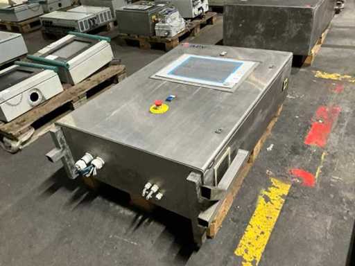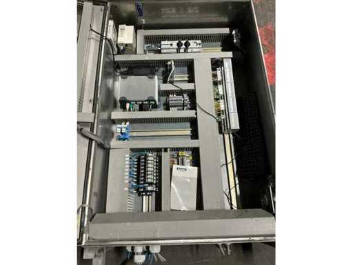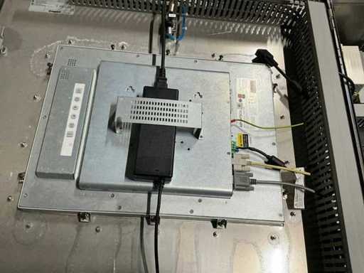 inhoud bestaande uit Telemecanique frequentieregelaar, Advantech FPM 5171G touchscreen monitor, relais …
