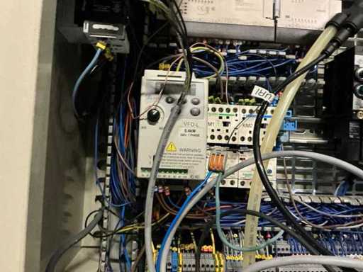 inhoud bestaande uit PLC, 2x frequentieregelaar, contactors, zekeringsautomaten,….