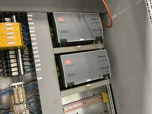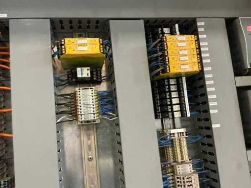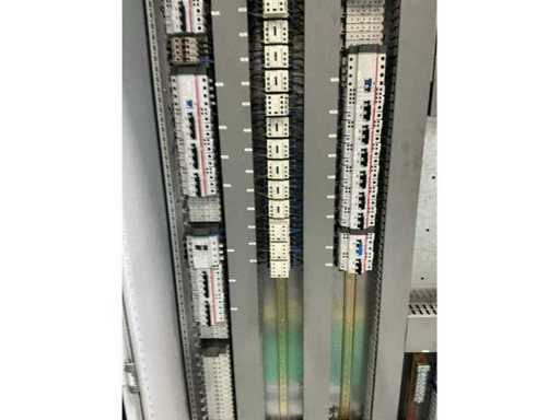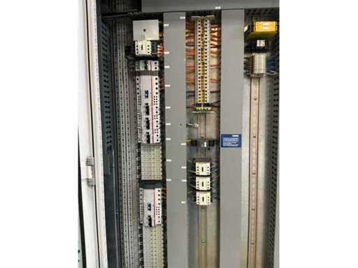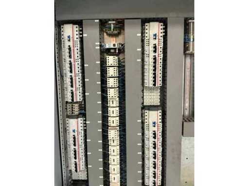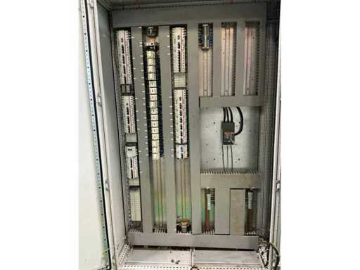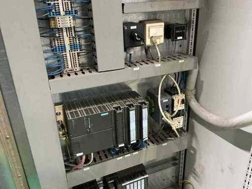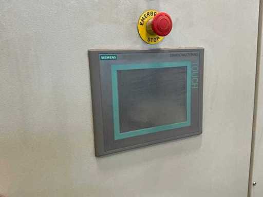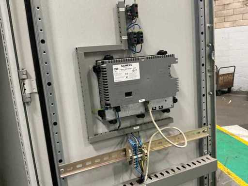 inhoud bestaande uit Siemens PLC, relais, Siemens touchpanel, zekeringsautomaten, contactors,,….