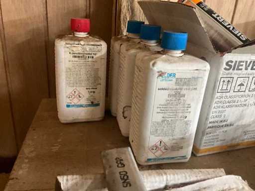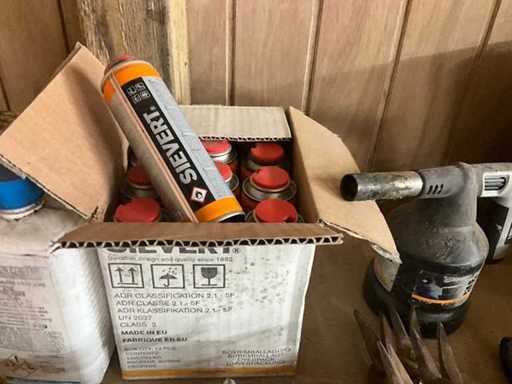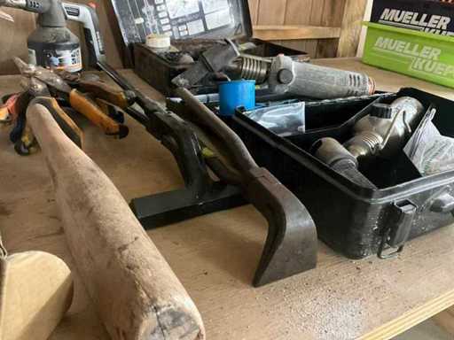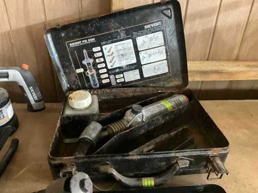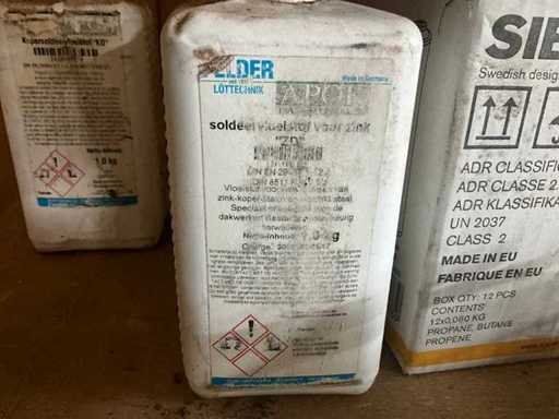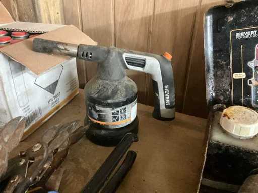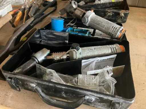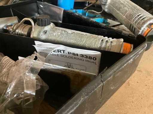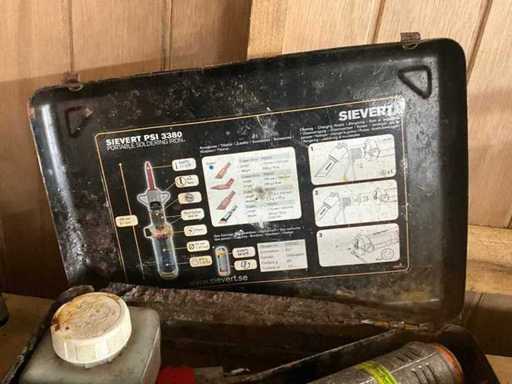 Waaronder 3 soldeertoestellen SIEVERT PSI 3380, drijver, tin soldeer staven, tangen, soldeeervloeistof voor zink,en koper