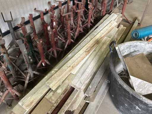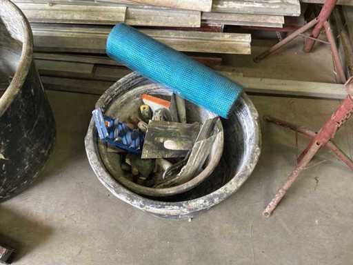 Diverse stucadoorsmateriaal waaronder onder meer diverse handgereedschap, stellingvoeten en -balken,…
