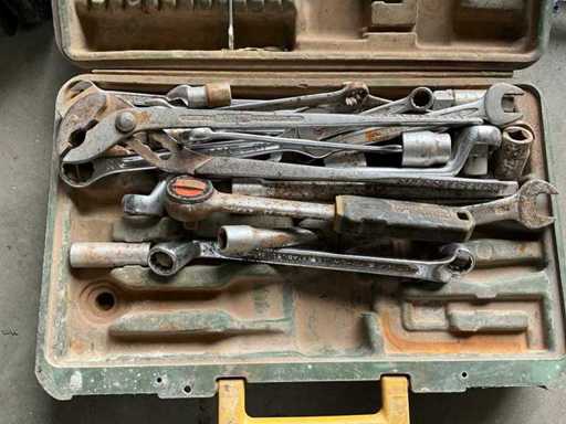 Bestaande uit accu klopboormachine Keyang HD18BL, voorzien van 2x accu en lader, accu schroefboormachine Skil voorzien van accu en lader en diverse steek- ringsleutels