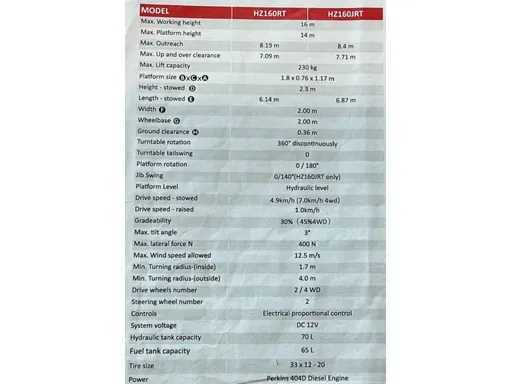 - Maximum platformhoogte: 14meter.