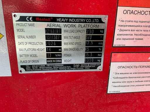 2026 Mantall HZ160JRT Hoogwerker