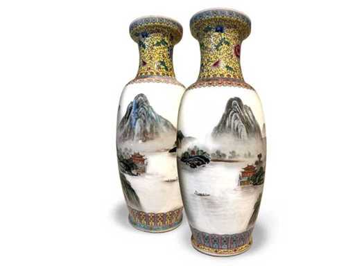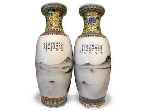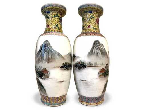 Twee grote Jingdezhen vazen. 63cm hoog. Gemerkt aan de onderkant.