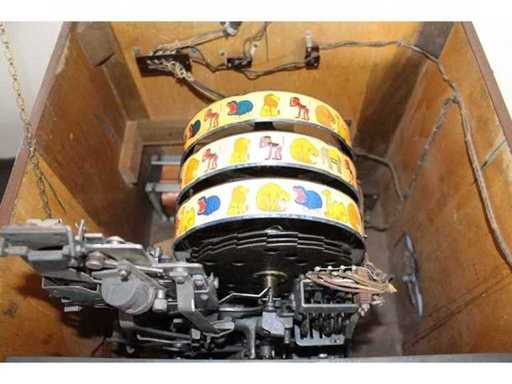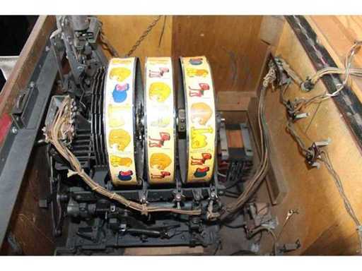 Mechanische slotmachine, accepteert Amerikaanse 5 Cent stukken en betaalt deze ook uit, met Gold Jumbo extra Award munten, gerestaureerd