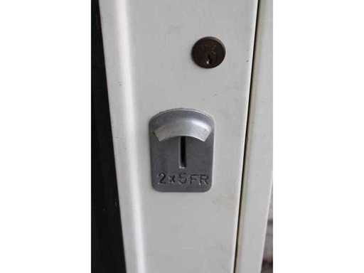 Metalen sigarettenautomaat met 2 schachten, inworp 2 x 5 Frank