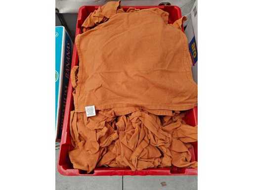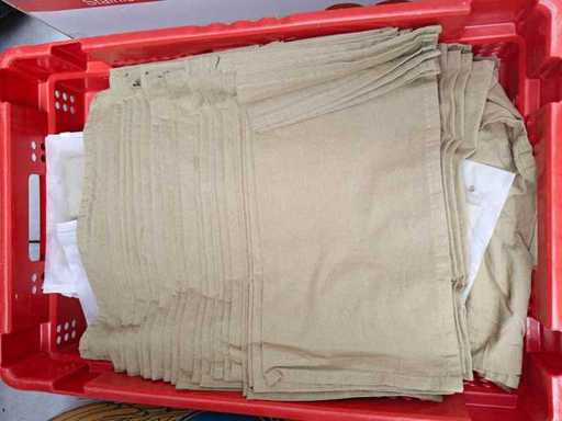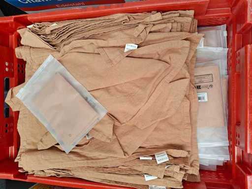 Partij linnen servetten, 5 transportbakken inhoudende plm 500 stuks waarvan plm 100 olijfgroen, plm 100 roestbruin, plm 100 terracotta, plm 100 mosterdgeel, plm 100 gebroken wit