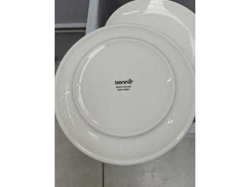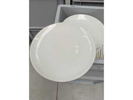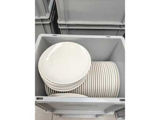 2 transportbakken inhoudende plm 87 dessertborden, kleur wit