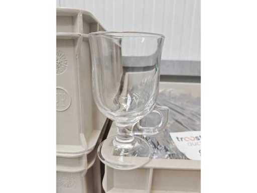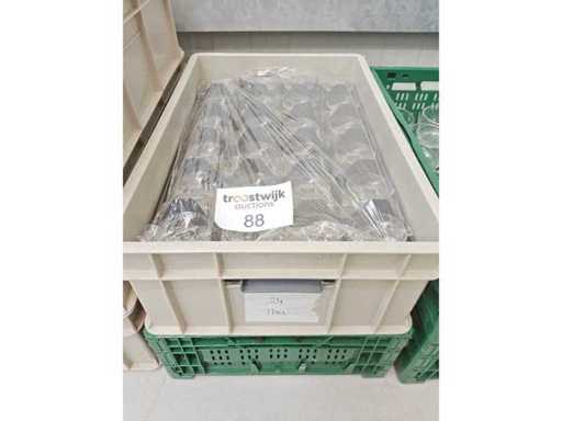 2 transportbakken inhoudende plm 49 theeglazen op voet