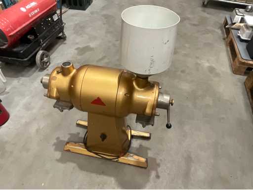Professionele gietijzeren molen, uitgerust met twee maalheads, bedoeld voor het verwerken van koffie in grote hoeveelheden. Robuuste en zware machine, typisch voor industriële molens die worden gebruikt voor het branden. De bovenste hopper is inbegrepen. Kenmerken: Merknaam: Mahlkönig Model: K6D Type: Dubbele koffiemolen Vermogen: 2 kW Spanning: 220 V Ampère: 8,3 A Snelheid: 900 RPM Frequentie: 50 Hz Gietijzeren constructie, zeer robuust