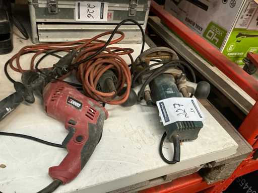 Bestaande uit : 1 Black&Decker bovenfrees/ 1 Xceed boormachine en 1 haakse slijper
