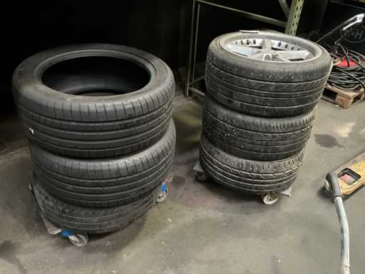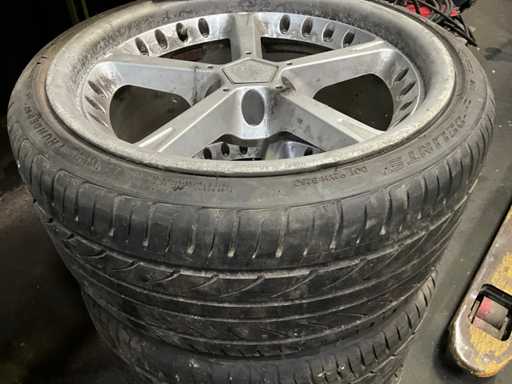 Bestaand uit 2x Dunlop Sport Max 255/45ZR18 + 3x band op lichtmetalen velg Delinte Thunder 225/30ZR19 +1x band op velg, ZONDER transport karretjes