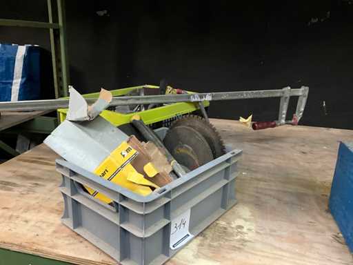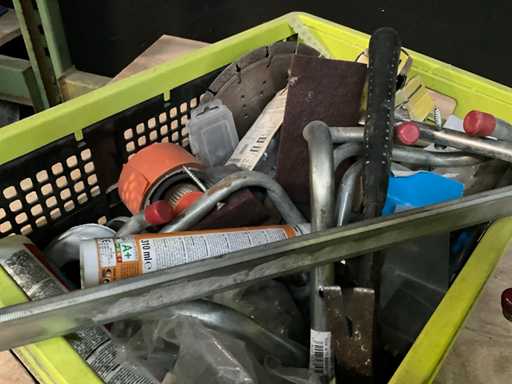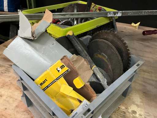 Bestaand uit handgereedschap, spanvijs lengte circa 150 cm, zaagbladen en schijven, box met diversen