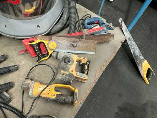 Waaronder: handzagen, Dewalt accu boormachine ( werking niet gekend), decoupeerzaag, waterpas