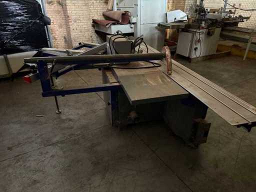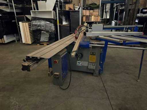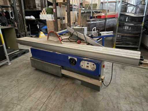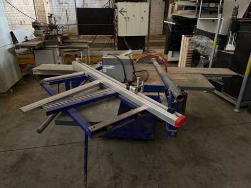 Machine type ➡️ Formaatzaag / Paneelzaag met roltafel (Engels: Sliding Table Panel Saw) Merk / verdeler ➡️ TendoTools Model ➡️ TT45/3200T CE-markering ➡️ Ja Bouwjaar ➡️ 11/2010 ⸻ ⚙️ TECHNISCHE GEGEVENS (volgens typeplaat) Hoofdmotor zaagblad ➡️ 4 kW – 3-fase Voorritser (scoring saw) ➡️ 0,75 kW Toerental hoofdzaag ➡️ 4.000 / 6.000 t/min Diameter hoofdzaagblad ➡️ 300 mm Toerental voorritser ➡️ 8.000 t/min Diameter voorritszaag ➡️ 120 mm Netto gewicht ➡️ ± 640 kg ⸻ 📐 AFMETINGEN & UITRUSTING Roltafel (schuiftafel) ➡️ 3200 mm (afgeleid uit model TT45/3200T) Zaagmogelijkheden • Recht zagen • Schuin zagen • Paneel- en plaatmateriaal • Met voorritser (ideaal voor melamine / fineer) Aanwezige onderdelen (zichtbaar op foto’s) ✔️ Aluminium roltafel ✔️ Aanslag met schaalverdeling ✔️ Verstekarm ✔️ Parallelgeleider ✔️ Beschermkap zaagblad ✔️ Noodstop ✔️ Afzuigaansluiting ⸻ 🪵 TOEPASSINGEN Geschikt voor: • Plaatmateriaal (MDF, multiplex, melamine) • Massief hout • Interieurbouw • Meubelmakerij • Schrijnwerkerij ➡️ Voorritser = grote meerwaarde (zuivere snede zonder splinteren) ⸻